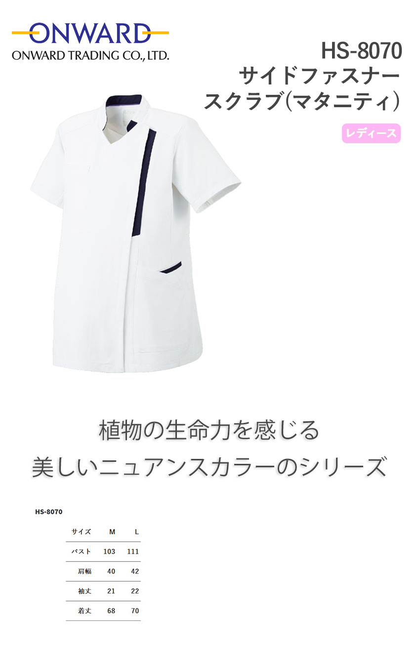 サイドファスナースクラブ マタニティ 白衣 医療 HS-8070 オンワード ONWARD ラフィーリア レディース 女性用 妊婦用 半袖 医者 看護師 ナース 研修医 医療 人気 制服 ユニフォーム 病院 小児科 介護 可愛い かわいい おしゃれ 動きやすい