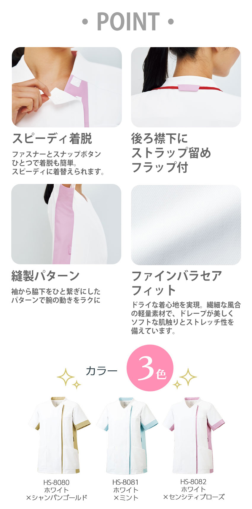 サイドファスナースクラブ 白衣 医療 HS -8080 ~ -8082 オンワード ONWARD ラフィーリア ユニセックス 男女兼用 半袖 医者 看護師 ナース 研修医 医療 人気 制服 ユニフォーム 速乾 病院 介護 可愛い かわいい かっこいい おしゃれ 動きやすいのレビュー
