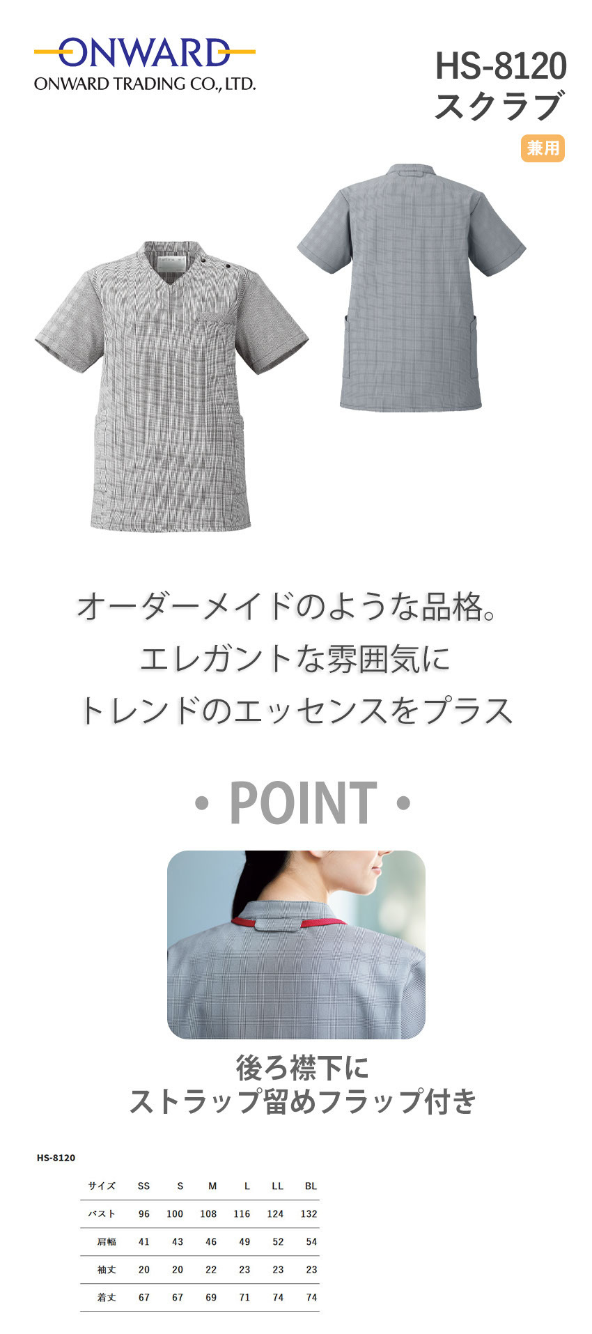 【メール便対応】スクラブ 白衣 医療 HS-8120 オンワード ONWARD ラフィーリア ユニセックス 男女兼用 半袖 医者 看護師 ナース 研修医 医療 人気 制服 ユニフォーム 病院 エステ 介護 かわいい 可愛い かっこいい おしゃれ 動きやすい