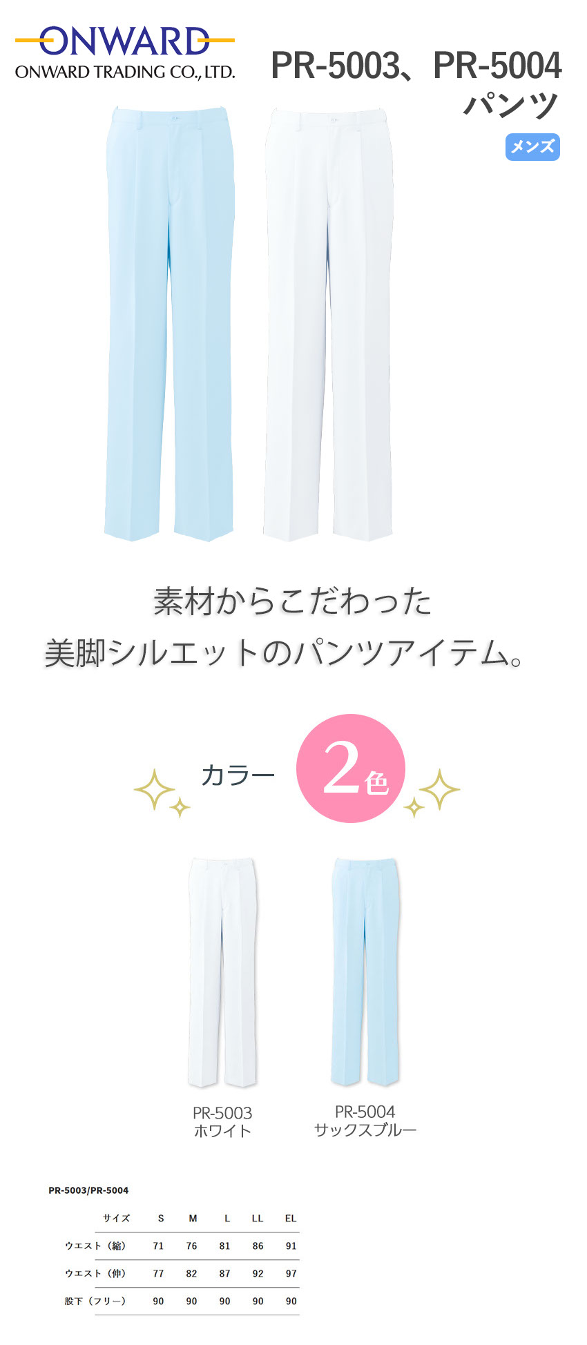 スクラブ パンツ オンワード ONWARD ラフィーリア PR-5003・5004 白衣 ズボン 白パンツ 白ズボン メンズ 男性用 医療用 人気 制服 ユニフォーム 医師 看護師 歯科医 病院 ストレート おしゃれ かっこいい 動きやすい