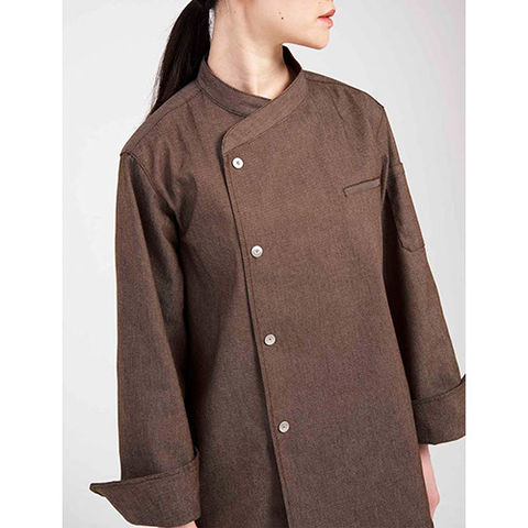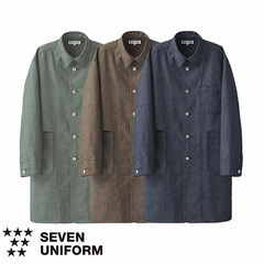 | 経年劣化しない麻調デニム生地が特徴です。綿デニムのような色落ちがほぼ無いのでいつまでもきれいな色のままを保ちます。麻は入っていませんが麻のようなドライタッチ感、適度なハリコシが着用時に高級感を醸し出します。ワークディティールがカルチャーとルーツを感じさせます。シェフからサービススタッフ、物販接客までコーディネートにより幅広いシーンを表現することが出来るアイテムです。ボタンは流行りのドットボタン仕様ですのでアクセサリー感覚な部分もあり着脱も楽です。色々な新しいコンセプトが生まれてくる中、色展開もそういったシーンにマッチする3色を用意しています。 |