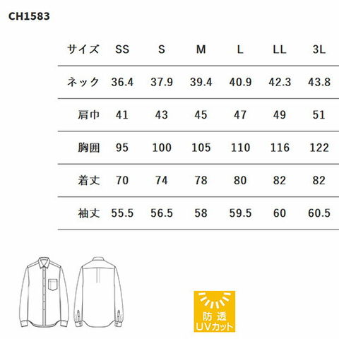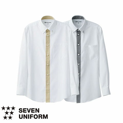 セブンユニフォーム 業務用 白シャツ ホワイト シャツ ブラウス ボタンダウンシャツ 長袖 CH1583 男女兼用 ユニセックス 防透 透けにくい UVカット おしゃれ 飲食店 制服 ユニフォーム レストラン カフェ かわいい かっこいい ブランド 老舗
