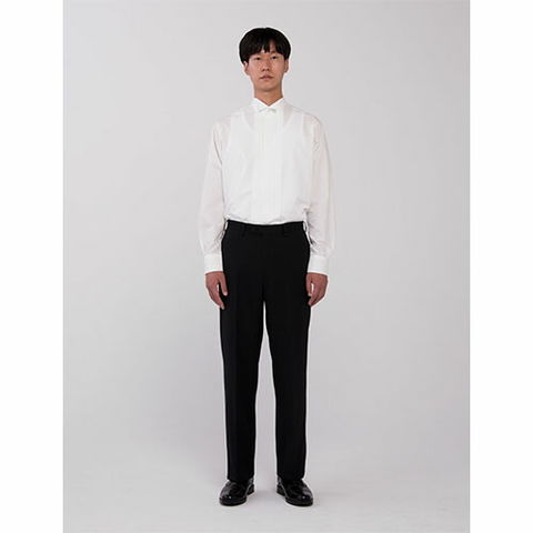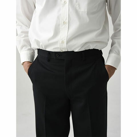 | ポリエステルレーヨンのカシミヤドスキン素材が毛混生地と同等の高級感を感じさせます。タキシード(DD2706-9,DD2705-9)と合わせるためのパンツです。ノータックの標準的なシルエット、年齢も問いません。撥水機能あり。 |