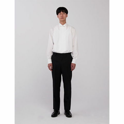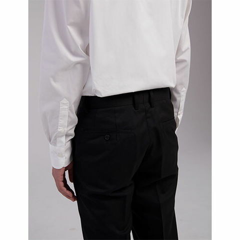 | 毛とポリエステル混紡糸の高級スーツ生地で作られたパンツです。同素材でホテル・レストラン向けのジャケットが数型あり、それとわせるパンツです。ノータックのすっきり見えるシルエットです。パンツ丈はフリー(92cm)になっていますので自分の長さでお直しする必要があります。 |