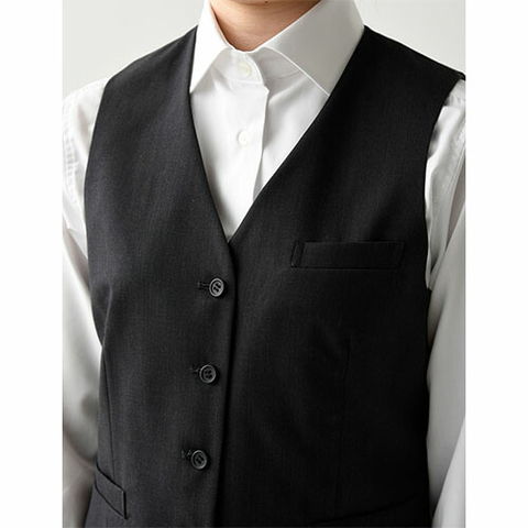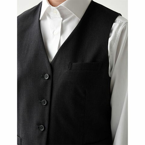 | ホテル・レストラン向けベストです。シンプルで普遍的なデザインで作られていますので永く着用出来ます。後ろに調節ベルトがありますので身体に合わせて調節して下さい。 |