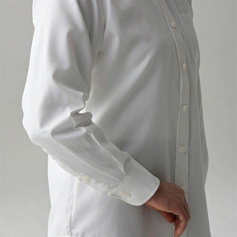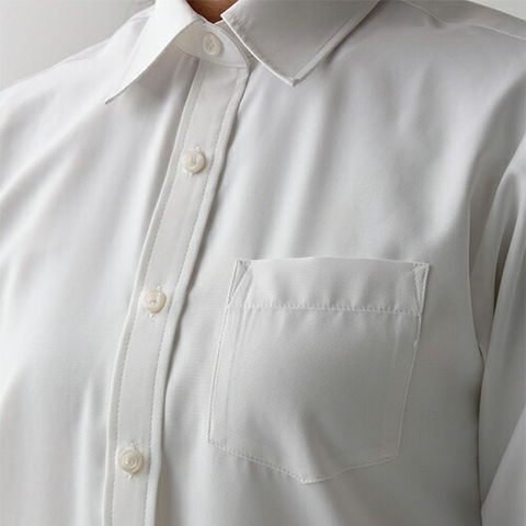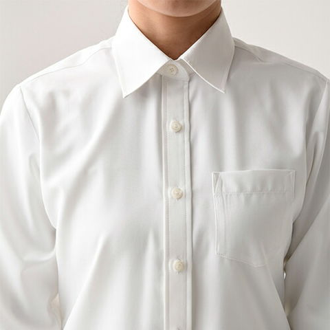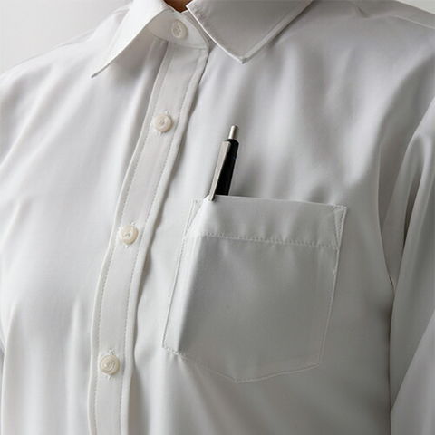 | 洗濯性に優れ、かつシルクの様な風合いのシャツです。綿とは違う上質な着心地を得ることが出来ます。前立てあり、左胸にポケットがあるシンプルなデザインです。スーツと合わせることも素敵ですが、素材感(シルク風)を活かすコーディネートが特にオススメです。例えばエプロンと合わせてエレガントなサービスシーンに活用すると尚良いと思います。女性用、長袖、透け防止、UVカット機能あり。 |