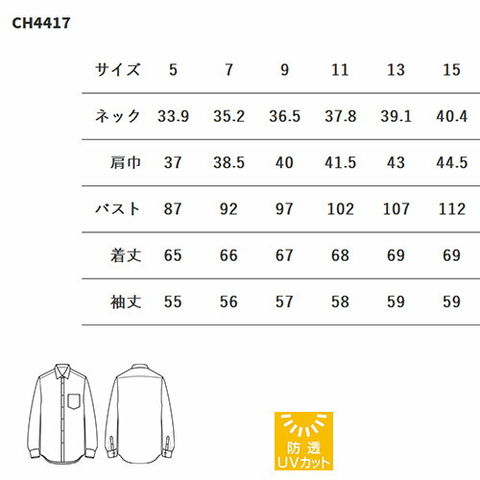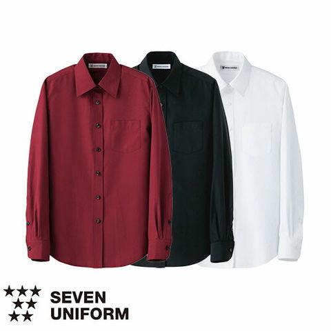 セブンユニフォーム 業務用 白シャツ ホワイト 黒シャツ ブラック ブラウス シャツ 長袖 CH4417 女性用 レディース 防透 透けにくい UVカット おしゃれ 飲食店 制服 ユニフォーム レストラン カフェ かわいい ブランド 老舗