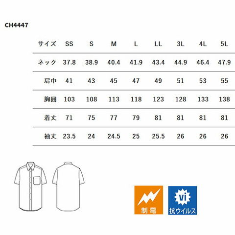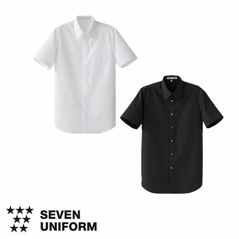 セブンユニフォーム 業務用 白シャツ ホワイト 黒シャツ ブラック シャツ ブラウス ワイシャツ シャツ 半袖 CH4447 男女兼用 メンズ レディース 制電 抗ウイルス おしゃれ 飲食店 制服 ユニフォーム レストラン カフェ かわいい かっこいい ブランド 老舗