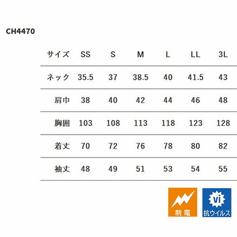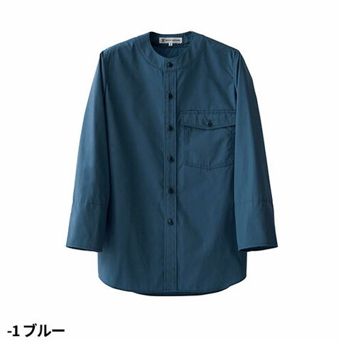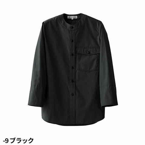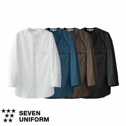 セブンユニフォーム 業務用 白シャツ ホワイト 黒シャツ ブラック シャツ ブラウス ワイシャツ ノーカラーシャツ 八分袖 袖口アンダーカバー付 CH4470 男女兼用 メンズ レディース 制電 抗ウイルス おしゃれ 飲食店 カフェ レストラン かわいい かっこいい
