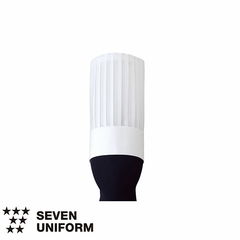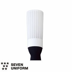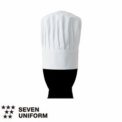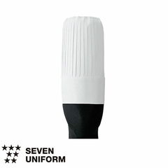 | 細布という生地は太い糸で平織りしたもので、寝具のシーツやカーテン、服の仮縫い時に使われています。その細布という生地でコック帽を作りました。カツラギより薄いが不織布より厚い適度な生地です。細かなプリーツ表現が美しく、丸天井がメッシュというデザインが特徴です。高さ40cmと当メーカーの中で一番高いコック帽でもあります。コック帽の高さは地位を表します。 |