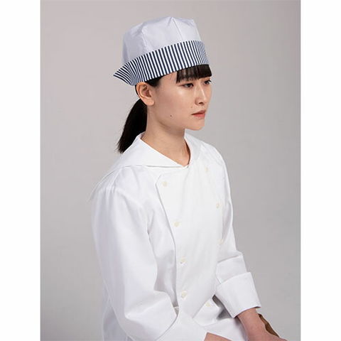 | 接客に適したキャップ。つばが無いので目線を邪魔することなくおもてなし出来るところがいい。後ろゴムで調整出来ます。男女兼用。 |