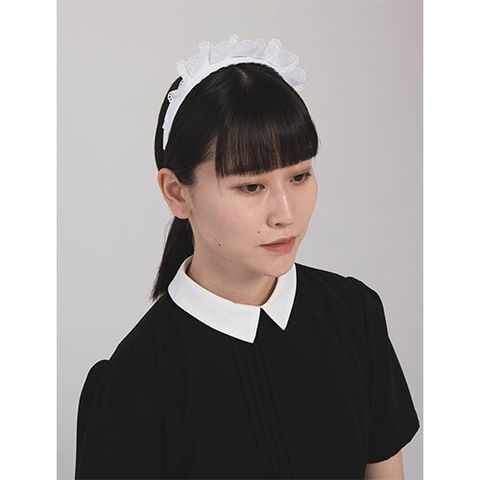 | カチューシャに簡単に取り外しが出来る布飾りが付いたものです。ハウスキーパー、レストランからアミューズメントまで幅広く着用されています。ユニフォーム生地に綿レースのような刺繍を施されています。比較的しっかりはしていますが、取り扱いは丁寧にすることで長く使うことができると思います。生地に抗菌防臭機能付き。 |