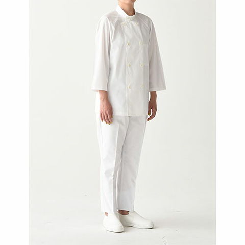 | コックコートデザインを薄手のシャツ生地で作られているところがポイントです。ラグラン袖は比較的どんな体型でも着用が楽で、動き易いカッティングです。7分袖。左胸に内ポケットあり。シンプルですのでコーディネート次第で自分に合うスタイルを作ることが出来ます。 |