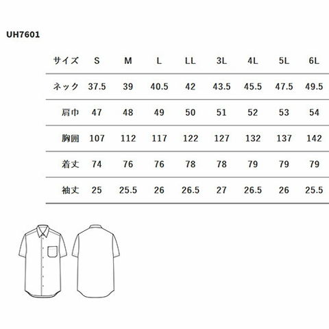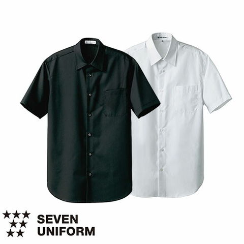 セブンユニフォーム 業務用 白シャツ ホワイト 黒シャツ ブラック ワイシャツ シャツ 半袖 UH7601 男性用 メンズ おしゃれ 飲食店 制服 ユニフォーム レストラン カフェ かっこいい ブランド 老舗