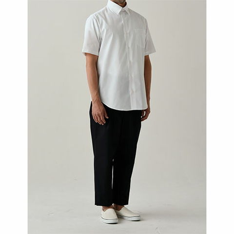 | コート生地で作ったシャツです。生地がシャツ生地よりしっかりしていて耐久性がよい、とうことから ”ザ・ユニフォームシャツ” と呼んでいます。デザインはとてもシンプル。どんな環境にも誰にでも着やすい定番シャツとして活用出来ると思います。サイズ感は少したっぷりとしています。男性用半袖、左胸にポケットあり。襟はしっかりとして硬めです。 |