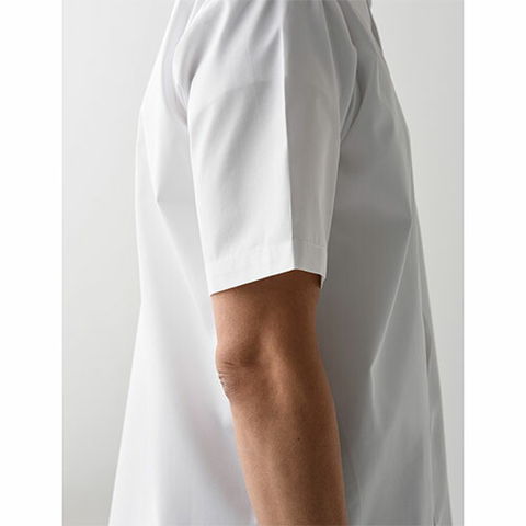 シンプルなデザインで、多種多様な分野に対応可能。ホテルからラーメン店まで幅広くご活用いただいている、定番の人気シャツです。