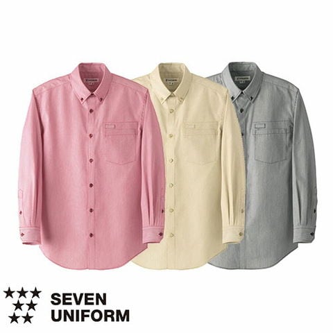 セブンユニフォーム 業務用 ワイシャツ ボタンダウンシャツ 長袖 WH7605 男性用 メンズ おしゃれ 飲食店 制服 ユニフォーム レストラン カフェ かっこいい ブランド 老舗