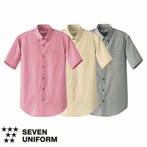 セブンユニフォーム 業務用 ワイシャツ ボタンダウンシャツ 半袖 WH7607 男性用 メンズ おしゃれ 飲食店 制服 ユニフォーム レストラン カフェ かっこいい ブランド 老舗