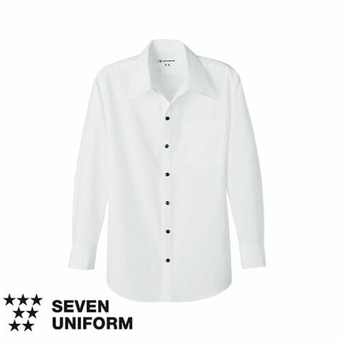 セブンユニフォーム 業務用 白シャツ ホワイト ワイシャツ スキッパーカラーシャツ 長袖 WH7612 オープンカラー 男性用 メンズ おしゃれ 飲食店 制服 ユニフォーム レストラン カフェ かっこいい ブランド 老舗
