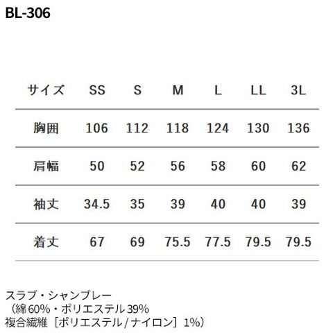 | スラブ・シャンブレー(綿 60%・ポリエステル 39%・複合繊維[ポリエステル / ナイロン]1%) |