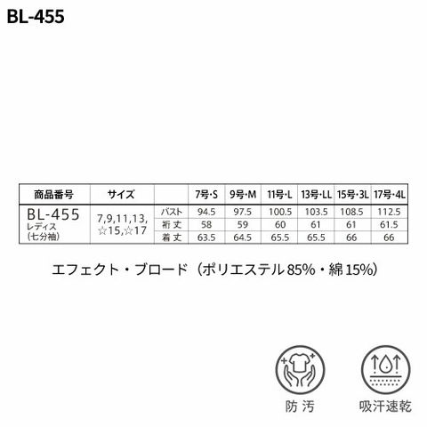 白シャツ ホワイト ワイシャツ レギュラーカラー BL-455 サーヴォ Servo 7分袖 女性用 事務 オフィス ビジネス フォーマル 飲食店 制服 ユニフォーム レディース レストラン カフェ おしゃれ かわいい おもてなし 清潔 防透 防汚 ブラウス