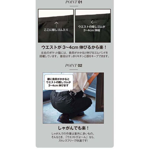 | 大人気の「ウエストびよ~ん」パンツに、待望の男女兼用モデルが新登場!どんなスタイルにも合う汎用性の高さが魅力。きちんとベルトループが付いたブラックパンツなのに、いざとなるとウエスト部分がびよ~んと3~4cmも伸びる大人気アイテム。熱いご要望にお応えしてついに「男女兼用」がリリースされました!(旧商品番号:SPAU-17010-B9)●男女兼用の3S~Sサイズはレディス用、Mサイズ以上はメンズ用。 |