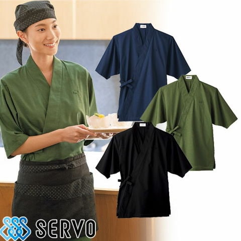 作務衣 和風 甚平 じんべい H2092 H2093 H2094 サーヴォ Servo 上衣 上品 飲食店 制服 ユニフォーム 居酒屋 旅館 和食店 蕎麦屋 割烹 おしゃれ かわいい かっこいい 紺 黒