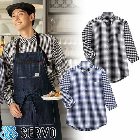 シャツ ワイシャツ レギュラーカラー SBSU-2001 サーヴォ Servo 7分袖 男女兼用 事務 オフィス ビジネス フォーマル 飲食店 制服 ユニフォーム メンズ レディース レストラン カフェ おしゃれ かわいい かっこいい チェックシャツ
