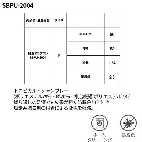 | 接客を意識したデザイン性の高い胸当てエプロン、防脱色加工を施したHACCP支援アイテムです。胸当て部分、お腹、左後ろにポケット付き、お腹のポケットはポーチなどのベルトを通せるトンネルポケットになっています。肩ひもは黒の杉綾テープ(アクリル素材)を使い、後ろでクロスするタイプ。首への負担がなく、クロスする部分には、ずれ防止のテープが付いています。幅広いシーンで着用していただけます。 |