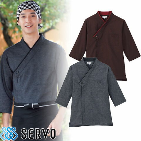 シャツ 和風 制服 ユニフォーム 七分袖 JT1258 JT1259 サーヴォ Servo 7分袖 男女兼用 カジュアル 飲食店 メンズ レディース 居酒屋 蕎麦屋 そば屋 うどん屋 屋台 ラーメン屋 おしゃれ かわいい かっこいい 茶 黒 ショップコート