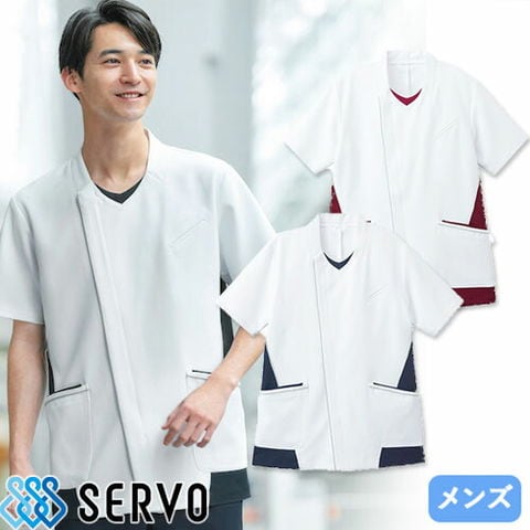 ケーシー 白衣 ジャケット MJAM-1803 メンズ 男性用 サーヴォ Servo 半袖 医療用 上衣 医務衣 診察衣 病院 クリニック 整体 医療 制服 ユニフォーム 医者 医師 看護師 ナース 横掛 おしゃれ かっこいい 動きやすい ファスナー