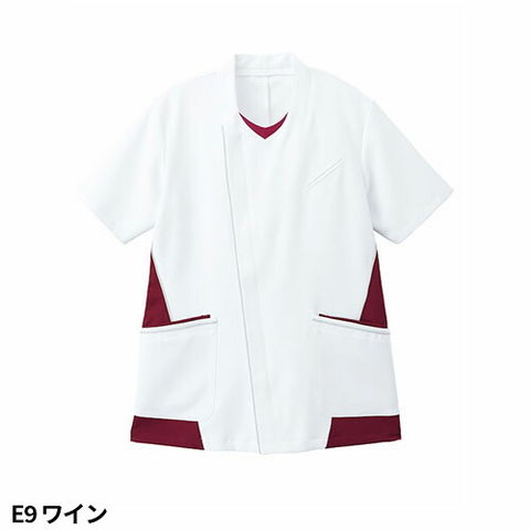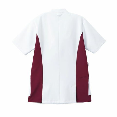 | サイドの配色や腰部分のコードパイピングでスタイルアップ効果も意識した、スッキリラインのジャケット。Vネックとパイピングですっきりのスタンダードタイプ白ベースにグレーのアクセントカラーを配したすっきりとしたノーカラーの男性用ジャケット。脇のパーツ配色はすっきりとした印象になります。前開きはスナップ&セミオートファスナー、後衿付け部分にストラップがずれにくいタブ付き、左胸・両腰・右後にポケット、さらにウエストループが付いています。腰ポケットはたっぷり収納で、小物を分別しやすい二重構造になっています。後ろ裾にはサイドベンツが入っていて動きやすく、ヒップのサイズカバーもします。ネイビー・ワインの2色展開です。 |