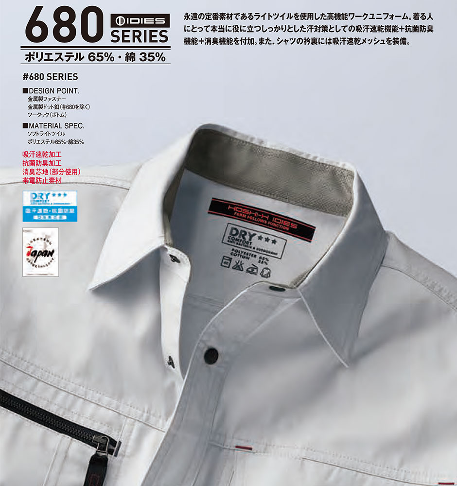 作業服 長袖シャツ ホシ服装 長袖シャツ 683 作業着 春夏 吸汗速乾 抗菌防臭 消臭 帯電防止