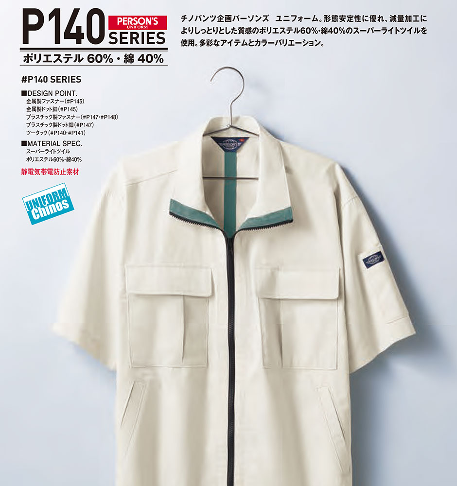 作業服 ブルゾン ホシ服装 半袖ジャケット P148 作業着 春夏 形態安定性 静電気防止