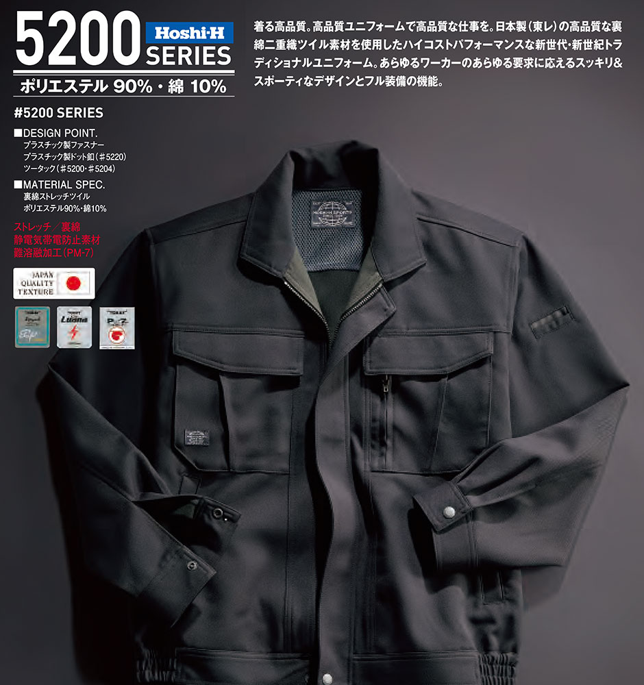 作業服 ブルゾン 作業着 ジャンパー ストレッチ 帯電防止 難溶融 ジャケット 通年 秋冬 ホシ服装 長袖 ジャンバー 上着 5220 おしゃれ かっこいい スポーティ 人気 外作業 ユニフォーム 仕事 土木 工事 現場 国産素材 メンズ 大きいサイズ 3L 4L 5L 紺 黒