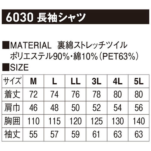 作業服 長袖シャツ ホシ服装 長袖シャツ 6030 作業着 通年 秋冬 帯電防止 ストレッチ ペットボトル再生ポリエステル使用のレビュー
