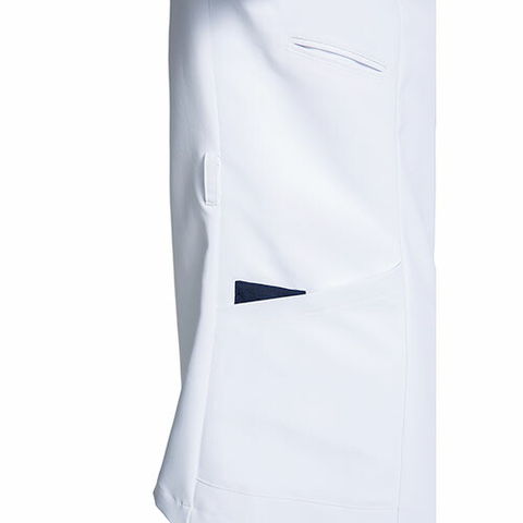 | 差し色でネイビーのパイピングを入れることで、メリハリが出てすっきりとした印象のレディースジップスクラブ。羽織って着られる前開きのファスナータイプなので、着脱時に髪が乱れたりメイクが崩れたりせず、ラクで快適です。SEK制菌加工を施しており、繊維上の黄色ブドウ球菌・肺炎かん菌・MRSAなどの有害な菌の増殖を抑制。白地でありながらインナーがひびきにくい透け防止機能もあり、安心して着用していただけます。カラースクラブにはまだ抵抗がある方にもおすすめ。ほどよく伸縮性があり、動きやすく、サラサラとした肌触りも魅力のレディースジップスクラブです。 |