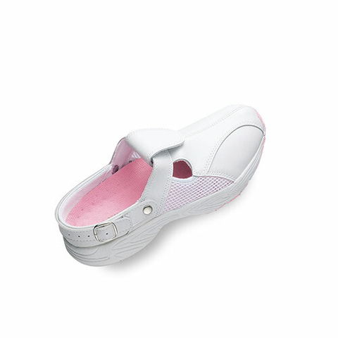 | 伸縮ゴムやアーチクッションが足に軽快にフィットする2way仕様のナースシューズ。取り外し可能なカップインソールは水洗いができて衛生的です。ムレにくく快適な通気性の良いメッシュ素材と、通気カップインソール、歩いた時の衝撃を和らげてくれる衝撃吸収材、アーチクッションなど嬉しい機能がたくさん。後ろのバックルベルトは可動式で履き方が選べて、幅広い方に履いていただけるナースクロッグシューズです。 |