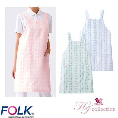 エプロン HI500 ワコール FOLK 予防衣 袖なし ノースリーブ 総柄 介護 介護士 訪問介護 介護用 ナース 看護師 保育士 歯医者 制服 ユニフォーム 汚れ防止 おしゃれ かわいい 可愛い レディース 女性用