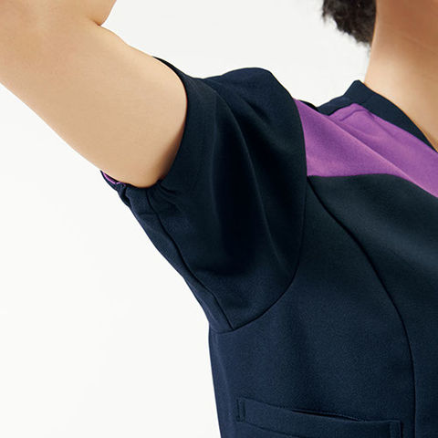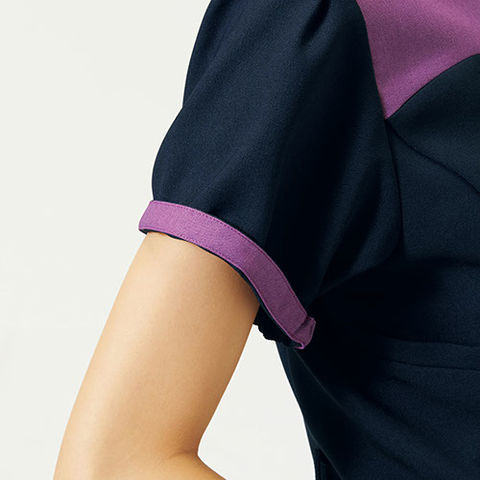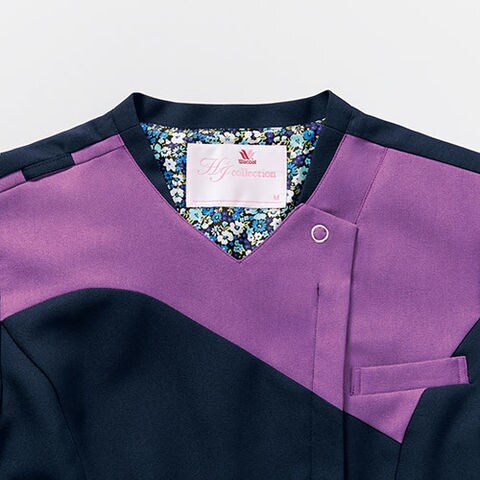 | ワコールと共同開発したワコールHIコレクションのレディースジップスクラブ。胸元のカーブしたラインがポイントで、小さな立ち襟が首回りをさりげなくカバーします。シンプルなソリッドカラーの裏地にペイズリー柄を施すことで、アクセントになり、ワコールHIコレクションらしいデザインに仕上がりました。羽織って着られる前ジップタイプなので、着脱時に髪が乱れたりメイクが崩れることがなく安心で快適。機能性はもちろんデザイン性も兼ね備えた、ワコールのレディースジップスクラブです。 |