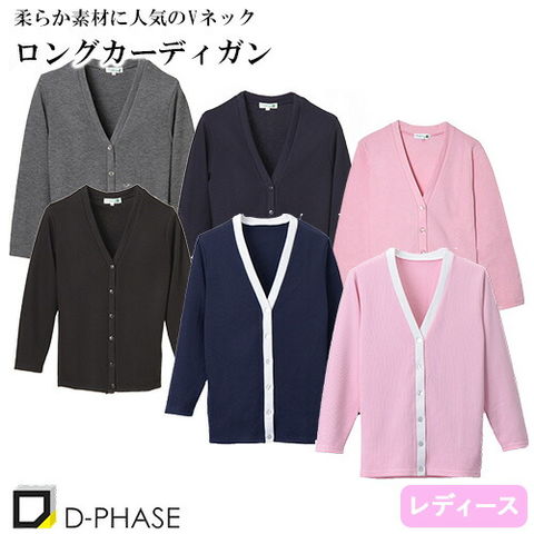 Vネックロングカーディガン 医療用 看護師 ナース ナースウェア ナース服 病院 レディース 女性用 ディーフェイズ C-10 ロング丈 ポリエステル 無地 毛玉にならない オフィスカジュアル 事務 受付 介護士 制服 きれいめ おしゃれ かわいい 前留め おすすめ
