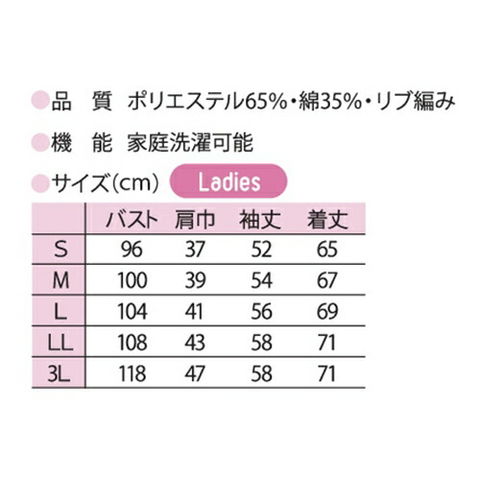 お尻まで隠れるロング丈なので、肌寒い季節に非常に役立ちます。白衣やブラウスの上に重ね着しても余裕があるため動きやすいのが魅力です。