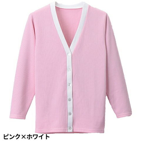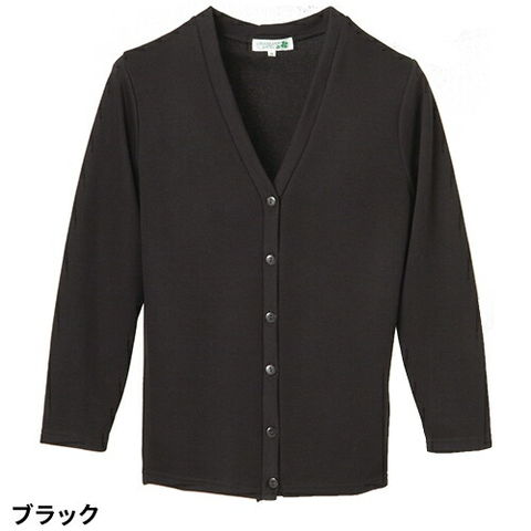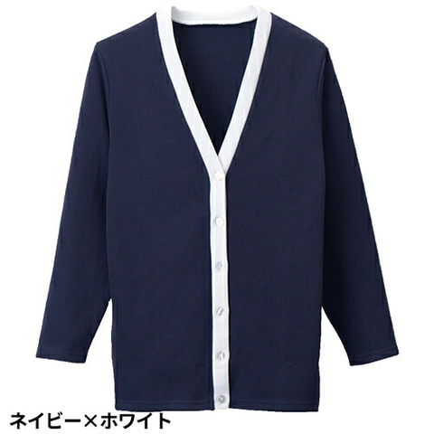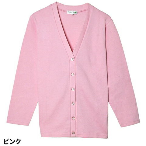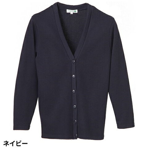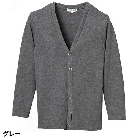 柔らか素材で、人気のVネックカーディガン、ロングタイプ。お尻まで隠れるロング丈なので、肌寒い季節に非常に役立ちます。白衣やブラウスの上に重ね着しても余裕があるため動きやすいのが魅力です。リブ編みで横方向によく伸びるので、やさしいフィット感があります。