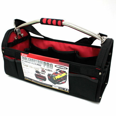 可動式ハンドルで持ち運び簡単、出し入れスムーズ、移動に便利なショルダーベルト付きキャリーバッグです。工具・道具・資材等の収納、持ち運びに。
