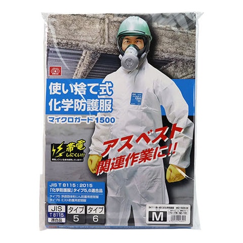 安全用品 防護服 藤原産業 SK11 使い捨て式化学防護服 MG1500-M、MG1500-L、MG1500-XL 粉体 解体 石綿 粉塵 粉じん 制電 防護 工事 建設 建築 災害 ボランティア