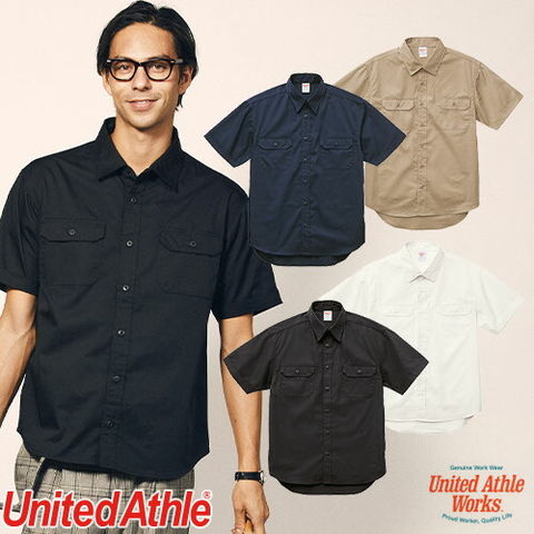 シャツ ワイシャツ レギュラーカラー United Athle ユナイテッドアスレ T/Cワーク 半袖 シャツ 177201 男女兼用 ユニフォーム レストラン カフェ おしゃれ かわいい かっこいい 崩れにくい 無地 シンプル 刺繍 名入れ 大きいサイズ
