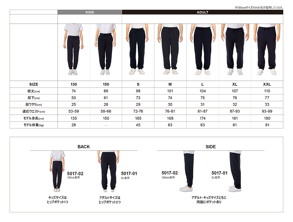 | 多用途に使える、定番スウェットパンツ。サイドとヒップの両方にポケットを備えており、ウエストは、調節可能な丸ひも付き(アダルトは外側、キッズは内側)。裾口はリブ仕様で、身頃とリブのつなぎ部分に入ったまたぎ2本針ステッチが、カジュアルな印象。521302・521402・504402のスウェットトップスと上下セットアップを組むことが可能です。スポーツ時やリラックスタイムなど、どのシーンでも活躍します。 |