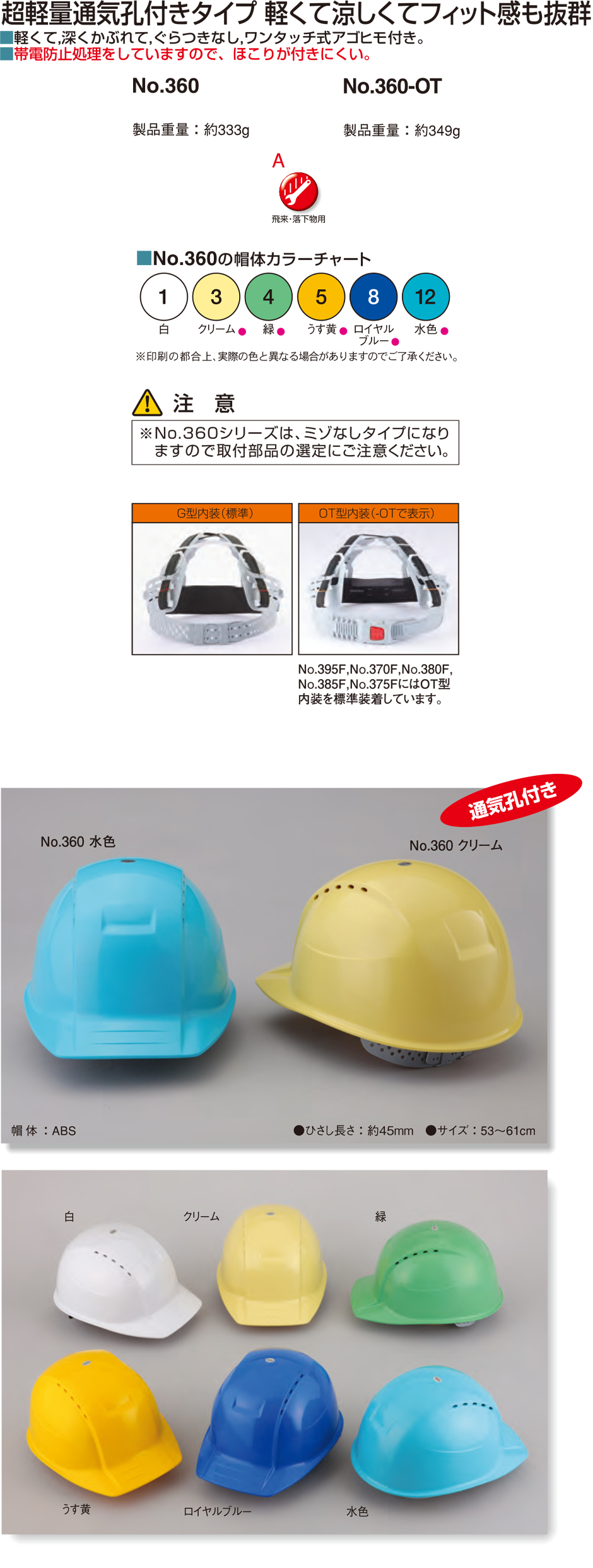 ヘルメット No.360-OT 超軽量 通気孔付き ワンタッチ型内装 トーヨーセーフティ TOYO SAFETY 通気口 涼しい 工事ヘルメット 作業用ヘルメット 工事用 作業用 工事 現場 防災 ワンタッチ 帯電防止