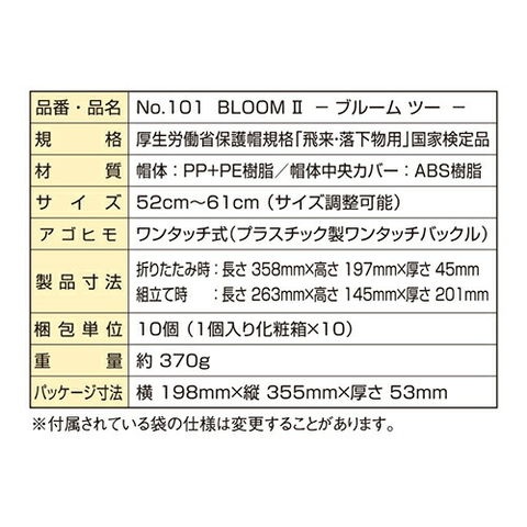 ヘルメット No.101 BLOOMII ブルームツー 折りたたみヘルメット トーヨーセーフティ TOYO SAFETY 防災用 防災 折り畳み 防災グッズ コンパクト 収納 工事現場