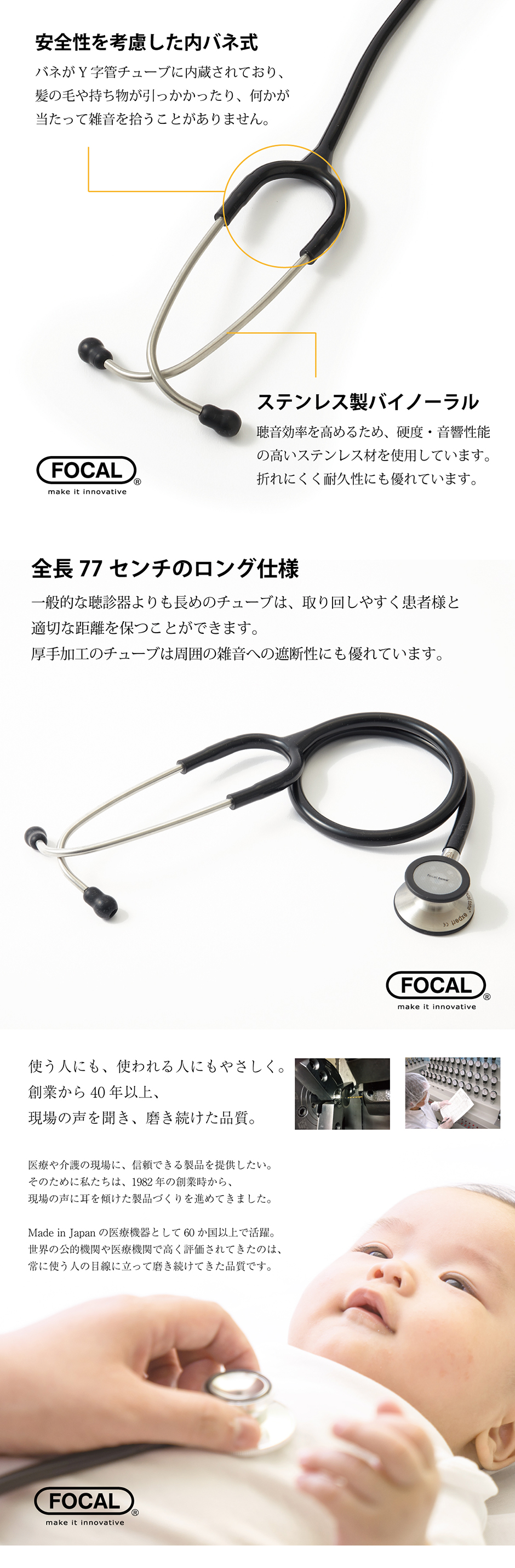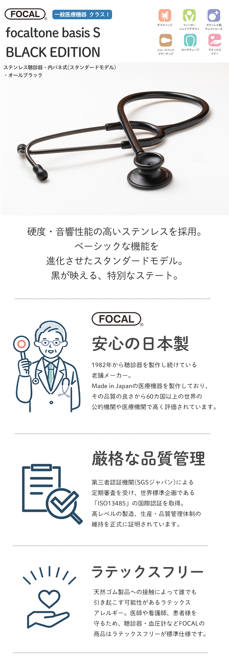 [日本製] FOCAL フォーカル 聴診器 フォーカルトーン focaltone basis S BLACK EDITION ダブルタイプ 内バネ式 オールステンレス 一般医療機器 医療用 病院 クリニック 看護師 ナース 看護学生 医師 ドクター 研修医 診察 医療 国内正規品のレビュー